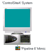 A Mimic named 'Pipeline 6' is created in ViewX on a system named 'ControlSiteA'.