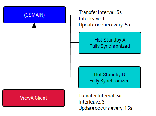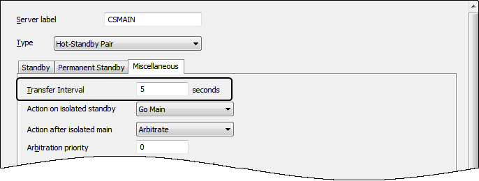 The Transfer Interval that you defined on the Miscellaneous tab applies to every server in the arrangement. So, if you have a Transfer Interval of 5 seconds, the main server attempts to update the standby servers every 5 seconds. By using the Interleave setting, you can apply different update rates to each Standby server, which is useful if a Standby server has a faster or slower connection than the other Standby servers.