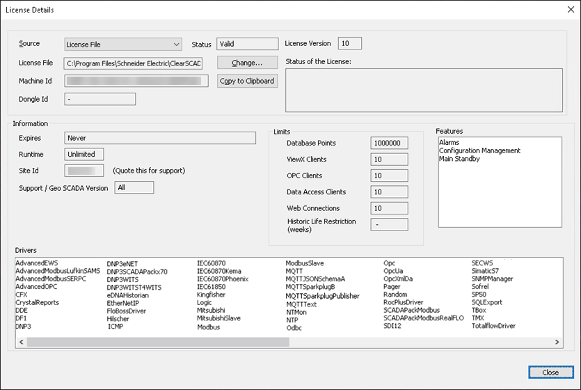 Display the License Details Window on a Geo SCADA Expert Server