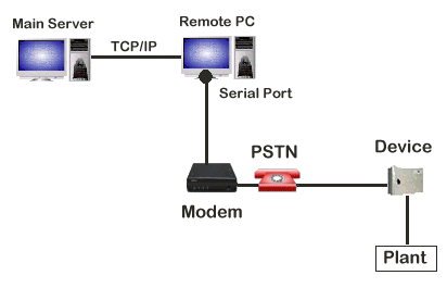 You can install the port server software on a Geo SCADA Expert server or remote PC to enable multiple PSTN channels to share a single modem. This is useful when there are limited modem resources available.