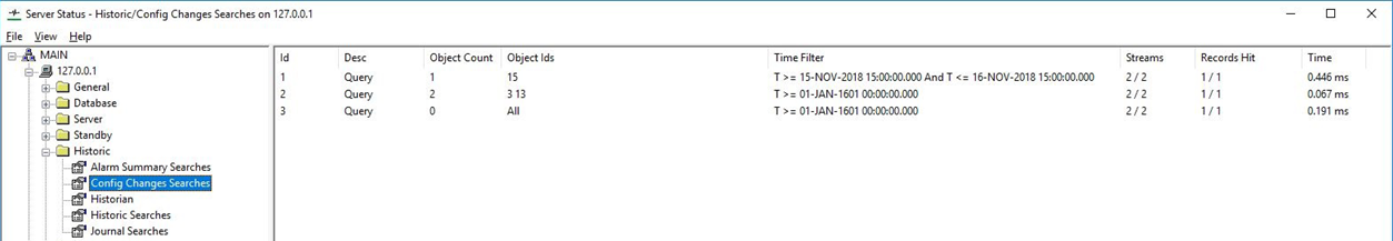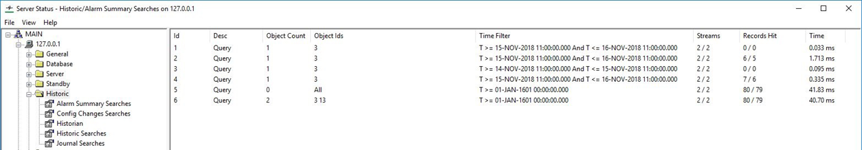 - Notice that the "3 13" objects' query in the Alarm Summary Search and Config Change Search has no time bound specified. We strongly recommend that all historic searches are restricted by including a time constraint that is short enough to avoid causing unnecessary adverse affects on the performance of your system.
