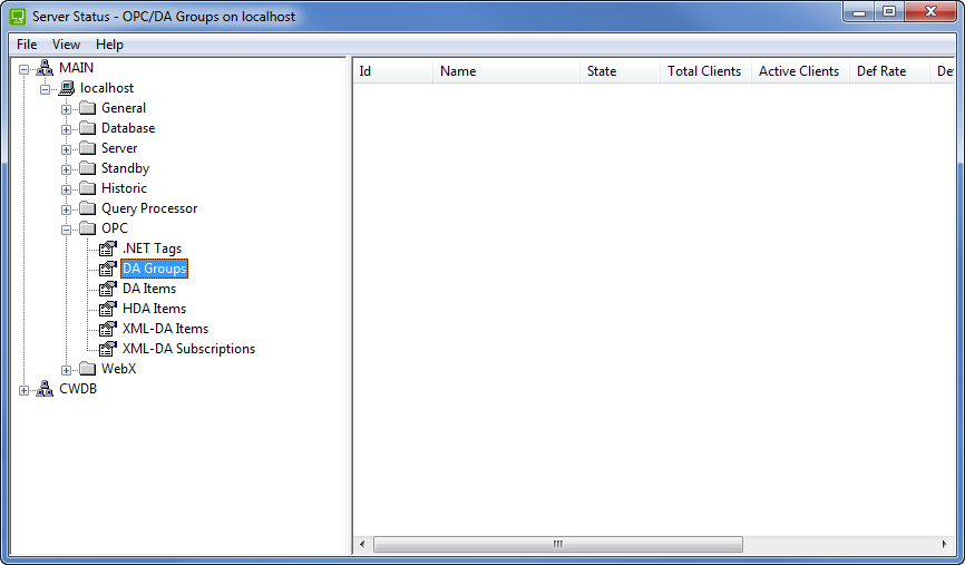 - Def Rate—Indicates the update rate at which the server sends the group data to the client. The Def Rate is in milliseconds.