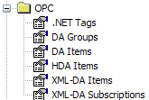 - DA Items—provides status information about the OPC DA tags to which the OPC DA client(s) is subscribed.