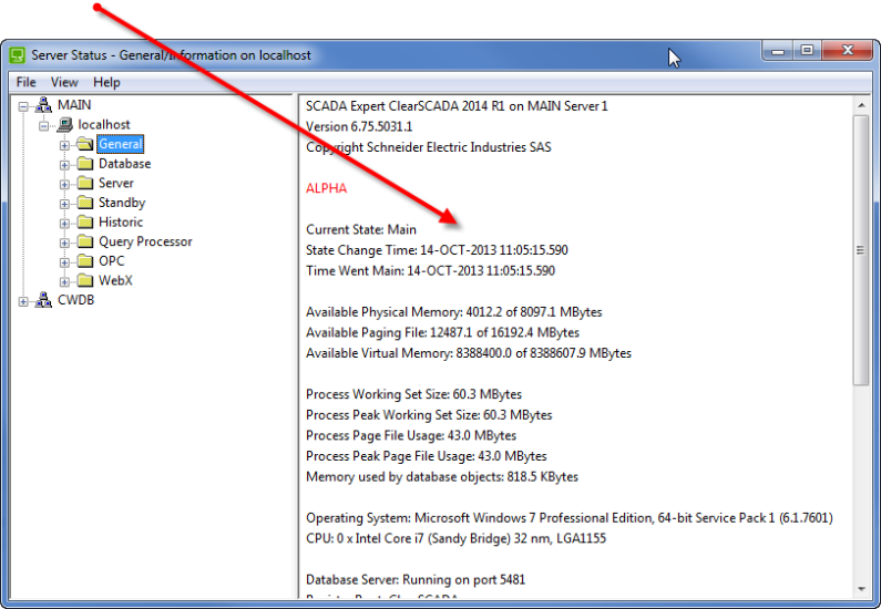 The Server Status Display section contains the status information for the selected category. For example, if you use the Server Status Explorer to select the Logging category in the General group, the Locks information is shown in the Server Status Display section.