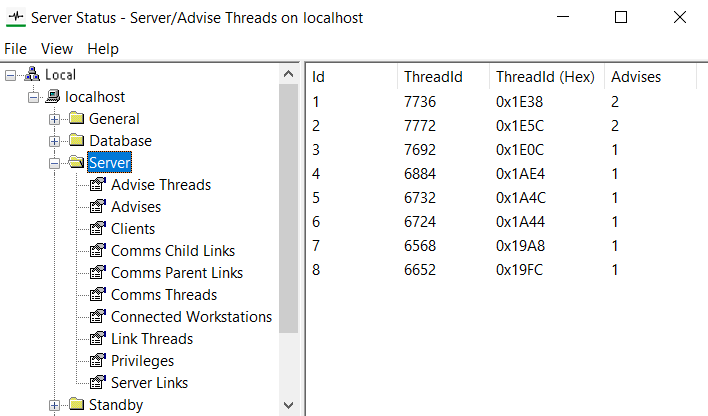 - Advise Threads—Provides status information about the threads that are handling advise links.