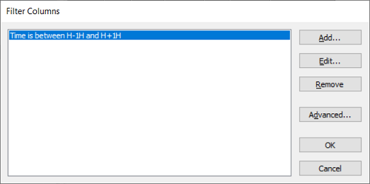 - Select the OK button to confirm your selections and close the Filter Columns window. The Events List is filtered so that it only shows those events that: