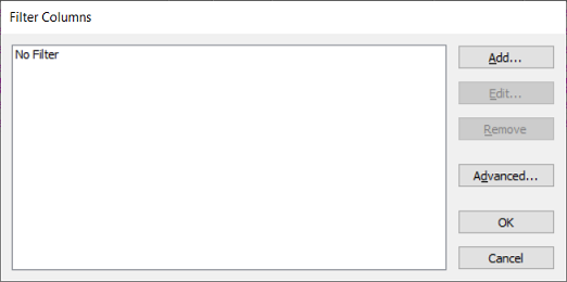 9. Select the OK button on the Filter Columns window to confirm your selection and close the Filter Columns window.