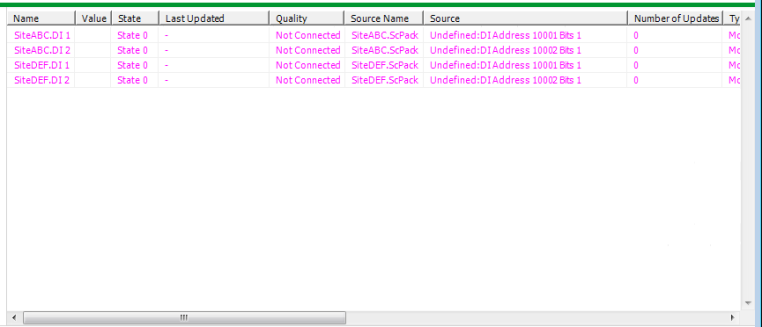 The Points List is filtered so that it only displays SCADAPack Modbus digital input points: