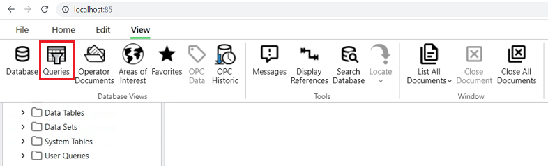 2. Select the Queries button on the ViewX client ribbon's View tab.