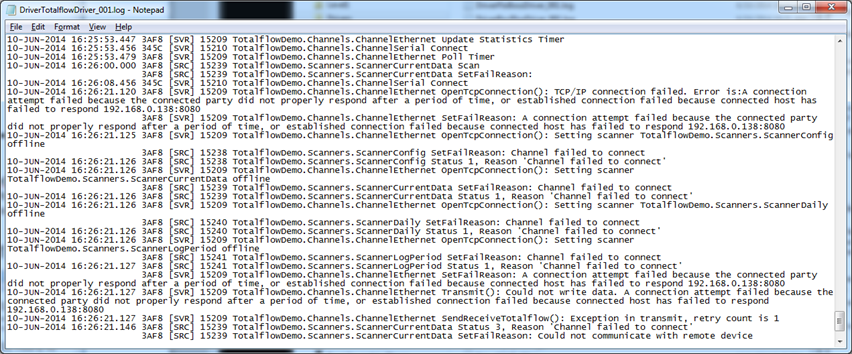 The driver log file logs the driver’s actions and the Totalflow’s responses, it provides a method of detecting abnormal conditions relating to driver activity. To open the driver log file, follow the directions on how to display the context-sensitive menu for the Driver Task – Server Status Tool.