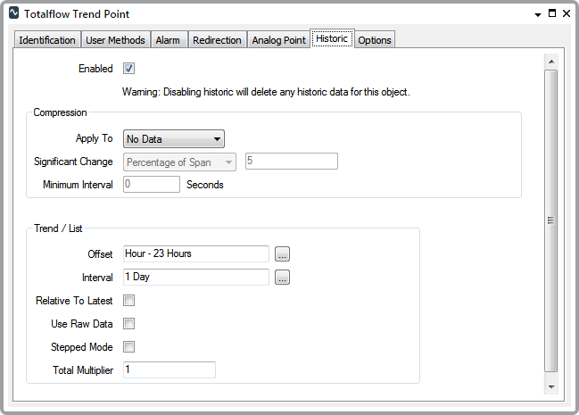 - Enabled—You need to select this check box on a Totalflow Trend Point, so that the driver can store the trend data that it retrieves for the point.