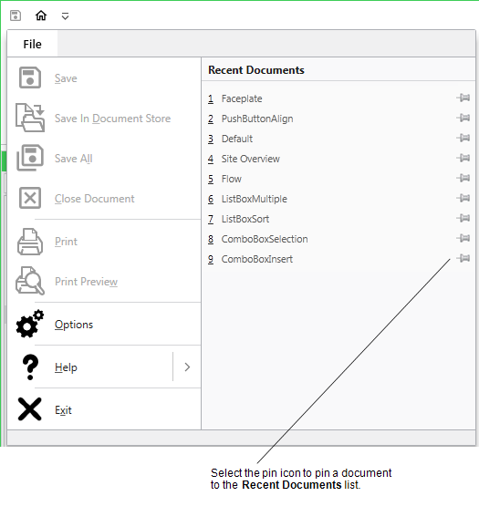 The File button is displayed to the far left of the title bar in the ViewX window. Use the button to access the File menu.