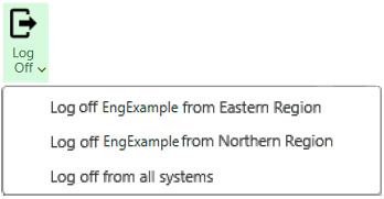 3. In the Security command group, select the drop-down menu for the Log Off command. The drop-down menu is only available if ViewX is connected to more than one system.