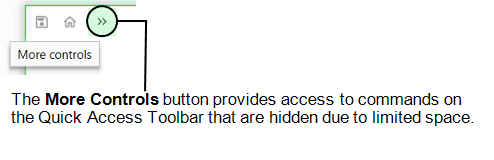 The appearance of the Quick Access Toolbar will change if the space across the width of the ViewX window becomes limited. As the ViewX window narrows, commands may no longer display. If this occurs, you can access the hidden commands from the More Controls button.