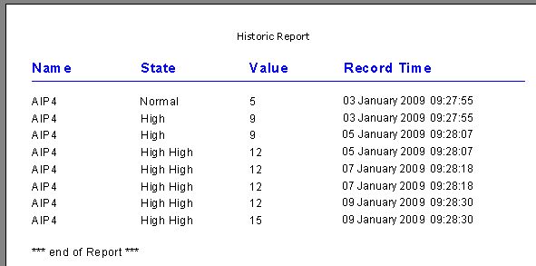 Your Geo SCADA Expert system will usually be configured to automatically generate and print reports on a regular basis, for example daily, weekly and monthly. You can, however, generate reports at any time.
