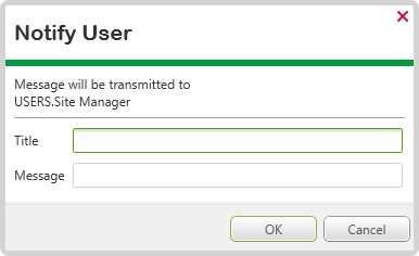 5. Select the OK button to close the Notify User window and send the message to the user.