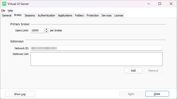 This tab is only included when the application is installed on a server class computer. The Primary broker section enables you to define the maximum number of users that can be allowed per broker.
