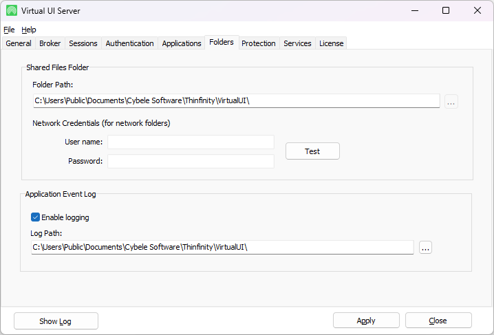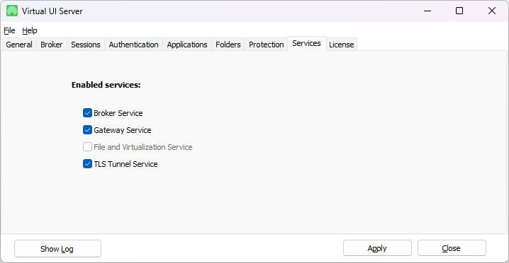 Unless specified otherwise, this topic summarizes the content of the Virtual UI Server window when the application is installed on a server operating system. The properties and tabs differ slightly when the application is installed on a desktop operating system (see Servers and Desktop Computers, and see 64-Bit).
