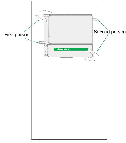 With a minimum of two people, lift the inverter up to the wall bracket.